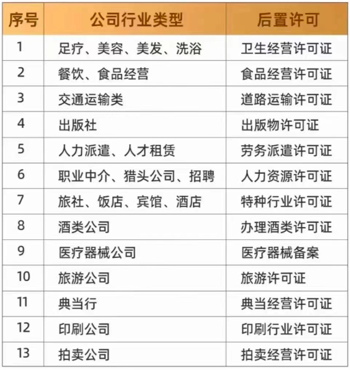 后置审批则是指营业执照办理下来后再去审批,比如: